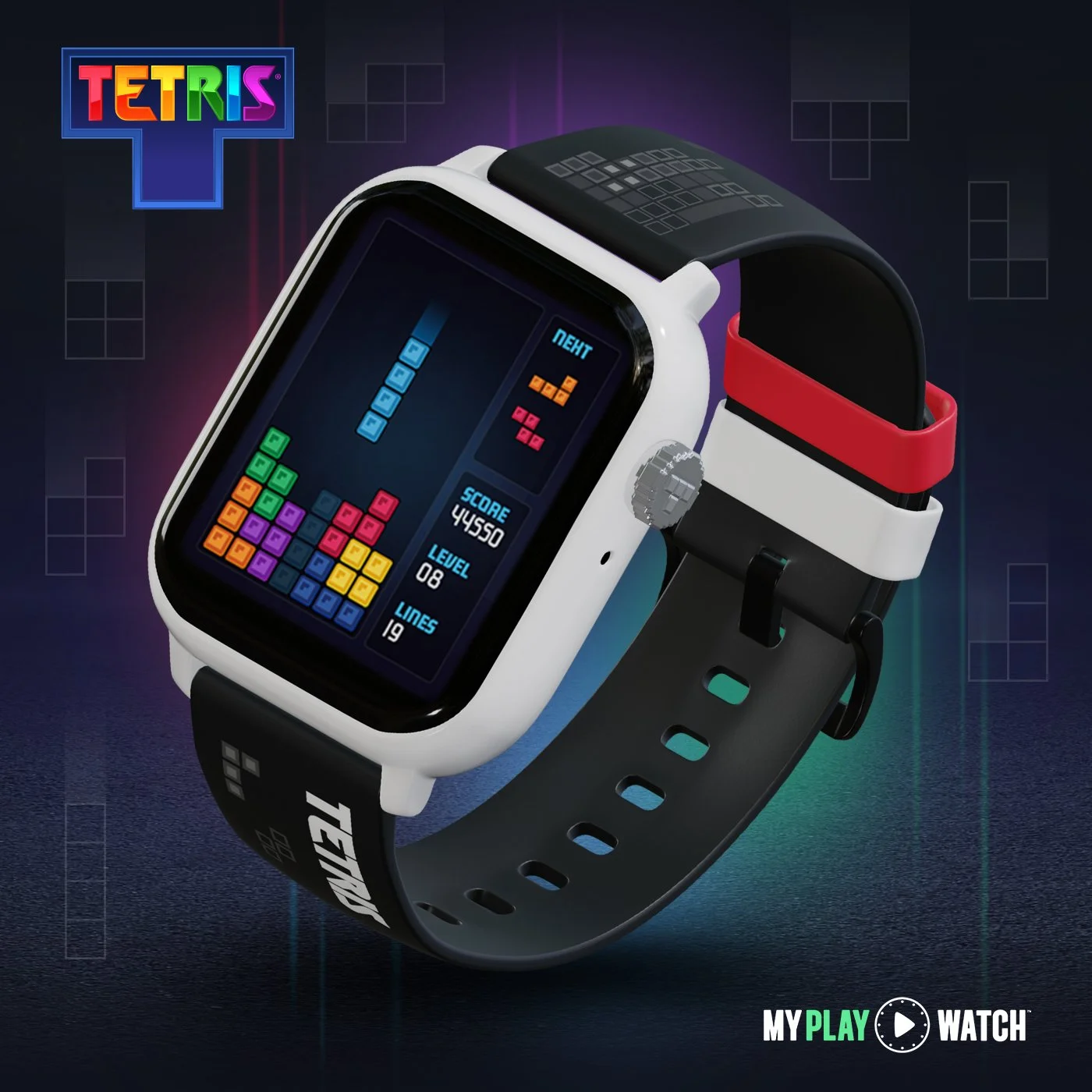 Introducing the Tetris®: My Play Watch – a non-connected smartwatch designed to bring classic Tetris® gameplay to your wrist. The My Play Watch hardware offers a distraction-free experience that combines retro gaming nostalgia with modern fitness fun, all in a cool, durable package.